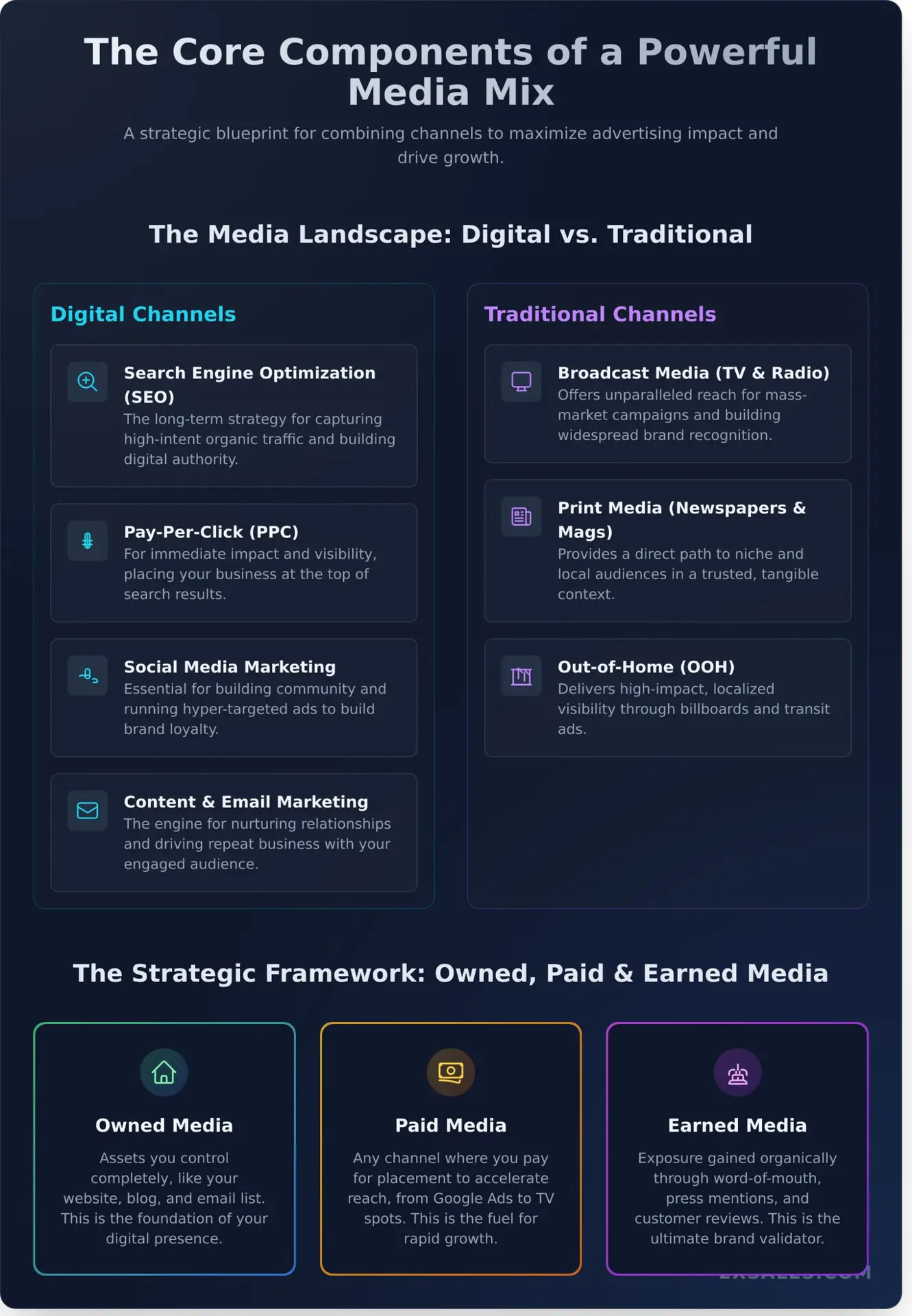 Crafting a powerful media mix requires a deep understanding of the modern marketing battlefield. The goal isn’t to be everywhere, but to be in the right places at the right time to connect with your target audience. Developing an effective media mix is about strategically allocating your investment across a blend of channels to maximize returns and ignite sustainable growth. Below, we break down the core components available to build your results-driven strategy.