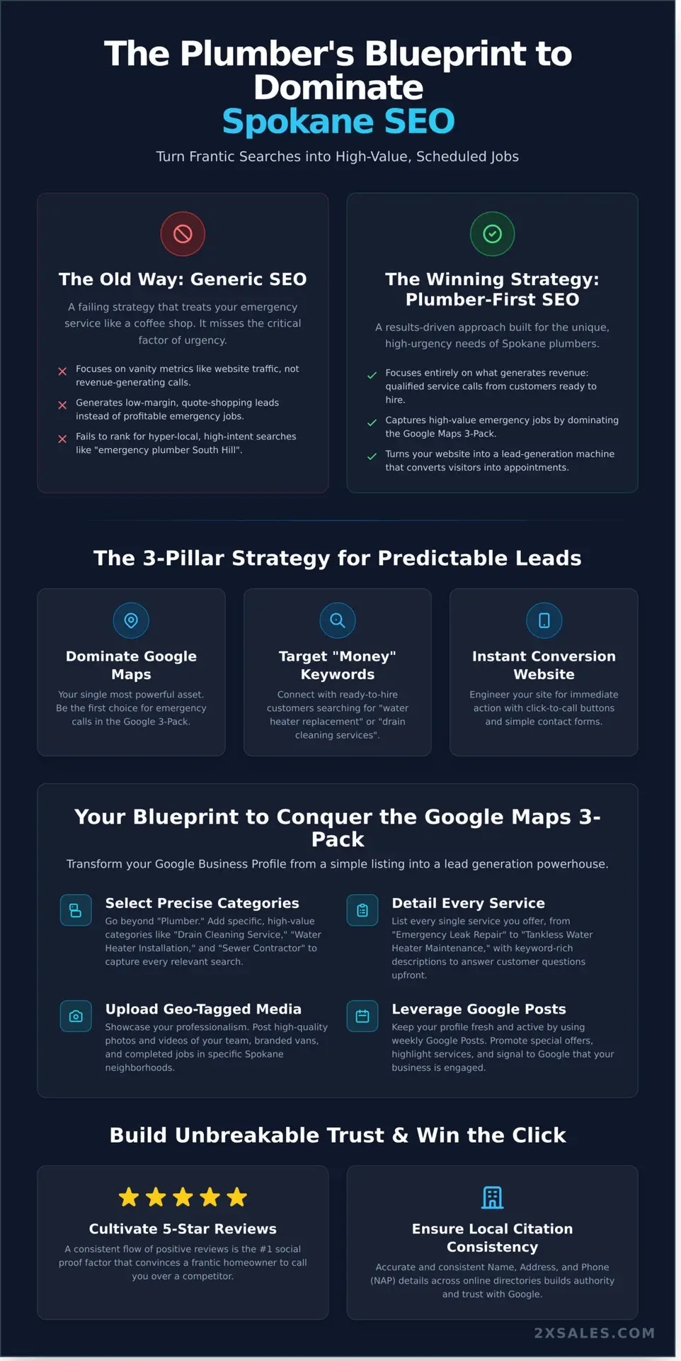 Your plumbing business isn’t a retail store or a coffee shop. When a customer in Spokane needs you, it’s often an emergency. A generic SEO strategy built for broad visibility will fail you because it doesn’t understand the critical factor of urgency. You don’t need thousands of website visitors; you need your phone to ring with qualified, profitable jobs from homeowners in distress. The difference isn’t about traffic-it’s about turning a frantic search into a booked appointment, fast.